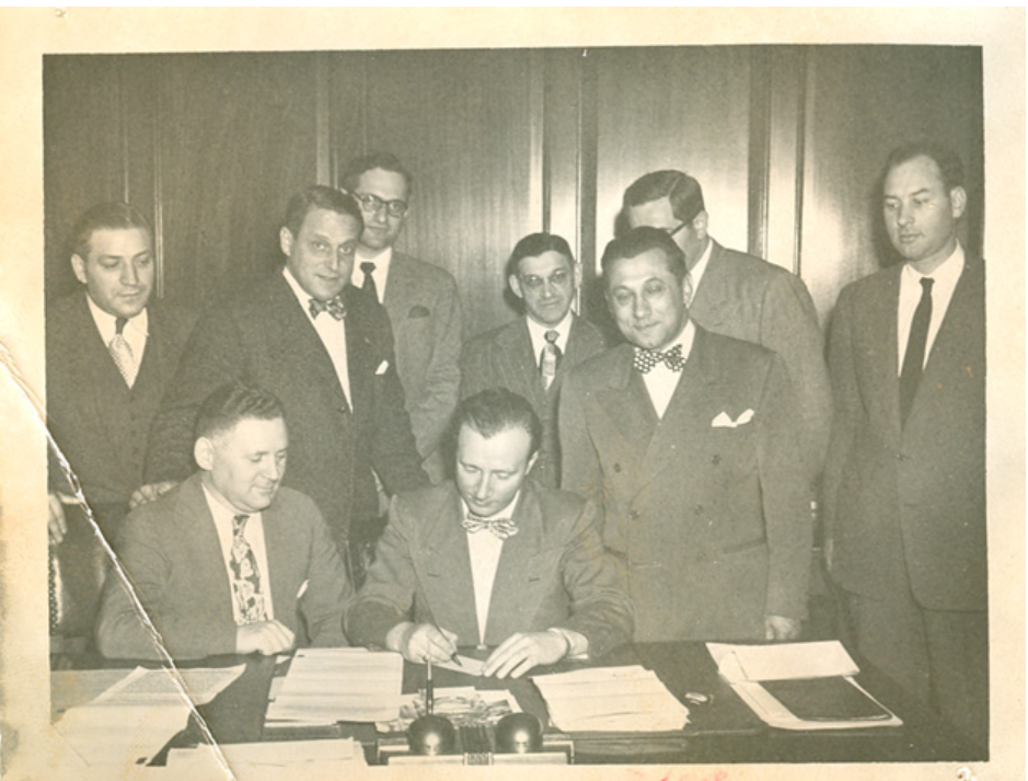 JCC President Harold Nelson Signing the Loan for Center Day Camp, 1949In 1949, the Jewish Community Center (JCC) of Portland, Maine purchased a 12-acre camp site on Sebago Lake basin and established Center Day Camp (CDC). The story of its acquisition is no longer remembered by many but is shared here to capture the beginnings of a place that has been and continues to be the “Crown Jewel” of the Jewish Community Alliance.